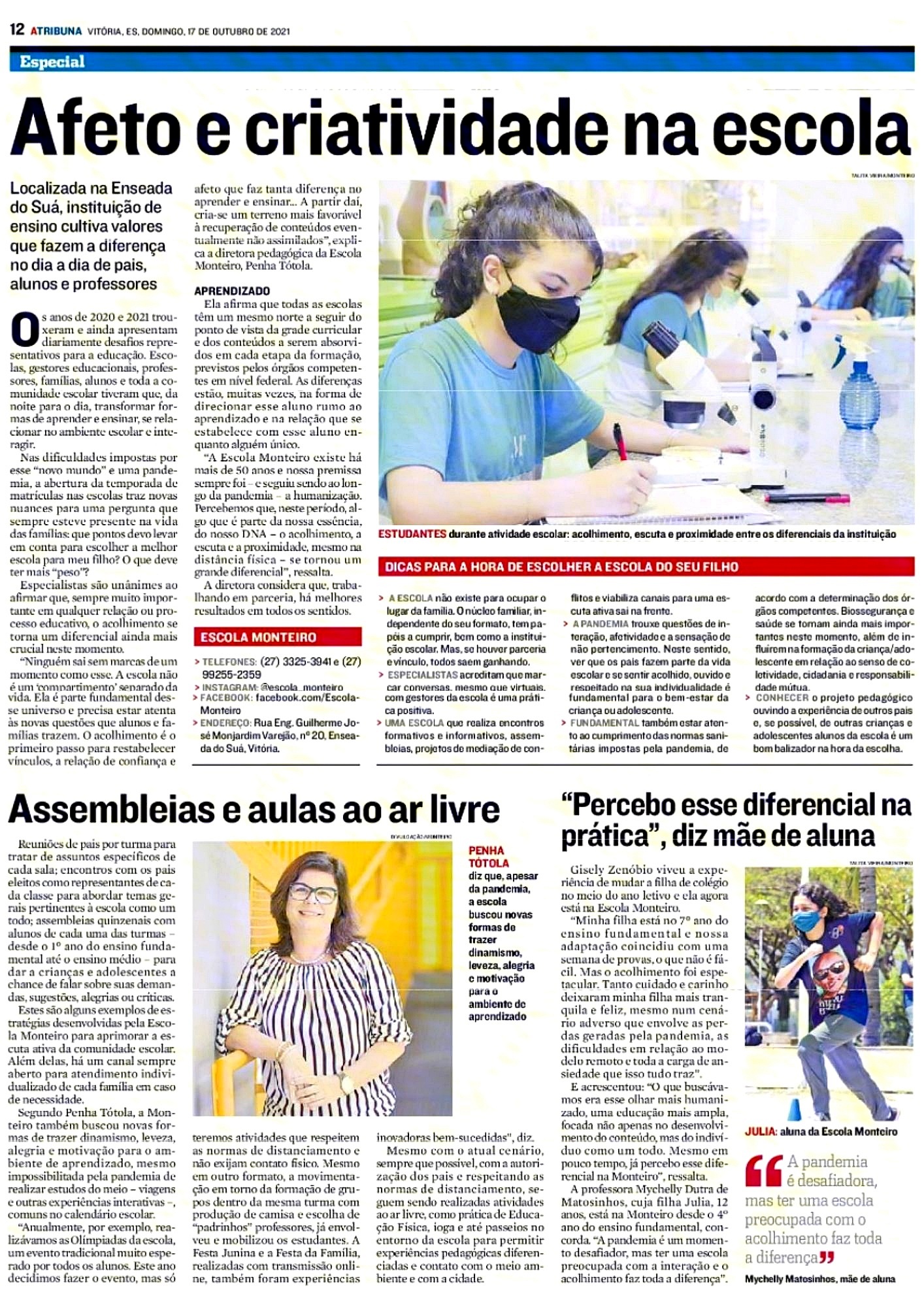 Matéria Especial publicada no jornal A Tribuna, em 17 de outubro de 2021.