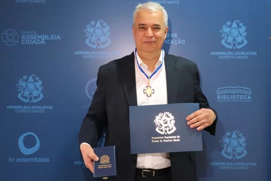 Nosso coordenador do ensino médio, Élio Serrano, foi um dos agraciados com a Comenda do Mérito Legislativo Chanceler Waldeth Nunes Theodoro, em homenagem à trabalhadores educacionais que promovem o empreendedorismo e a inovação. A homenagem aconteceu na manhã desta terça-feira (28), na assembleia Legislativa de Vitória.