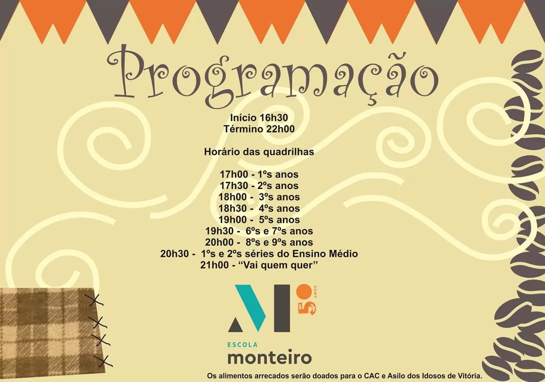 Venham animados para nossa Festa Junina, que terá como tema “Café: o ouro negro do Brasil, de Portinari a Villa Lobos”!